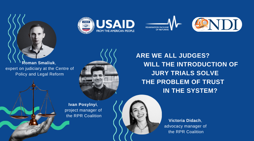 However, the classic jury trial has both advantages and disadvantages. Roman Smaliuk, expert on judiciary at the Centre of Policy and Legal Reform, Victoria Didach, advocacy manager of the Reanimation Package of Reforms Coalition, and Ivan Posylnyi, project manager of the Coalition, considered them and tried to understand how a jury trial can help administer justice using the example of Spain.