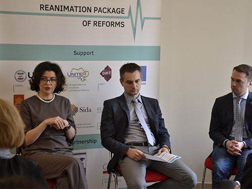 Distinguished guests of the event were Oksana Syroyid, Vice Speaker of the Verkhovna Rada and Leonid Yemets, First Deputy Chairman of the Verkhovna Rada Committee on Legal Policy and Justice. Reanimation Package of Reforms was represented by Mykhailo Zhernakov, former judge and RPR leading expert on judicial reform and Markiyan Halabala, Deputy Chairman of the Commission on Vetting of Judges and RPR expert on judicial reform.