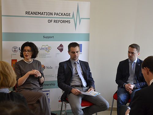 Distinguished guests of the event were Oksana Syroyid, Vice Speaker of the Verkhovna Rada and Leonid Yemets, First Deputy Chairman of the Verkhovna Rada Committee on Legal Policy and Justice. Reanimation Package of Reforms was represented by Mykhailo Zhernakov, former judge and RPR leading expert on judicial reform and Markiyan Halabala, Deputy Chairman of the Commission on Vetting of Judges and RPR expert on judicial reform.