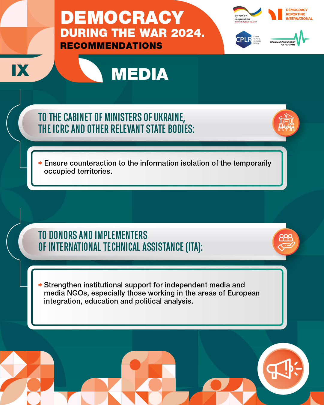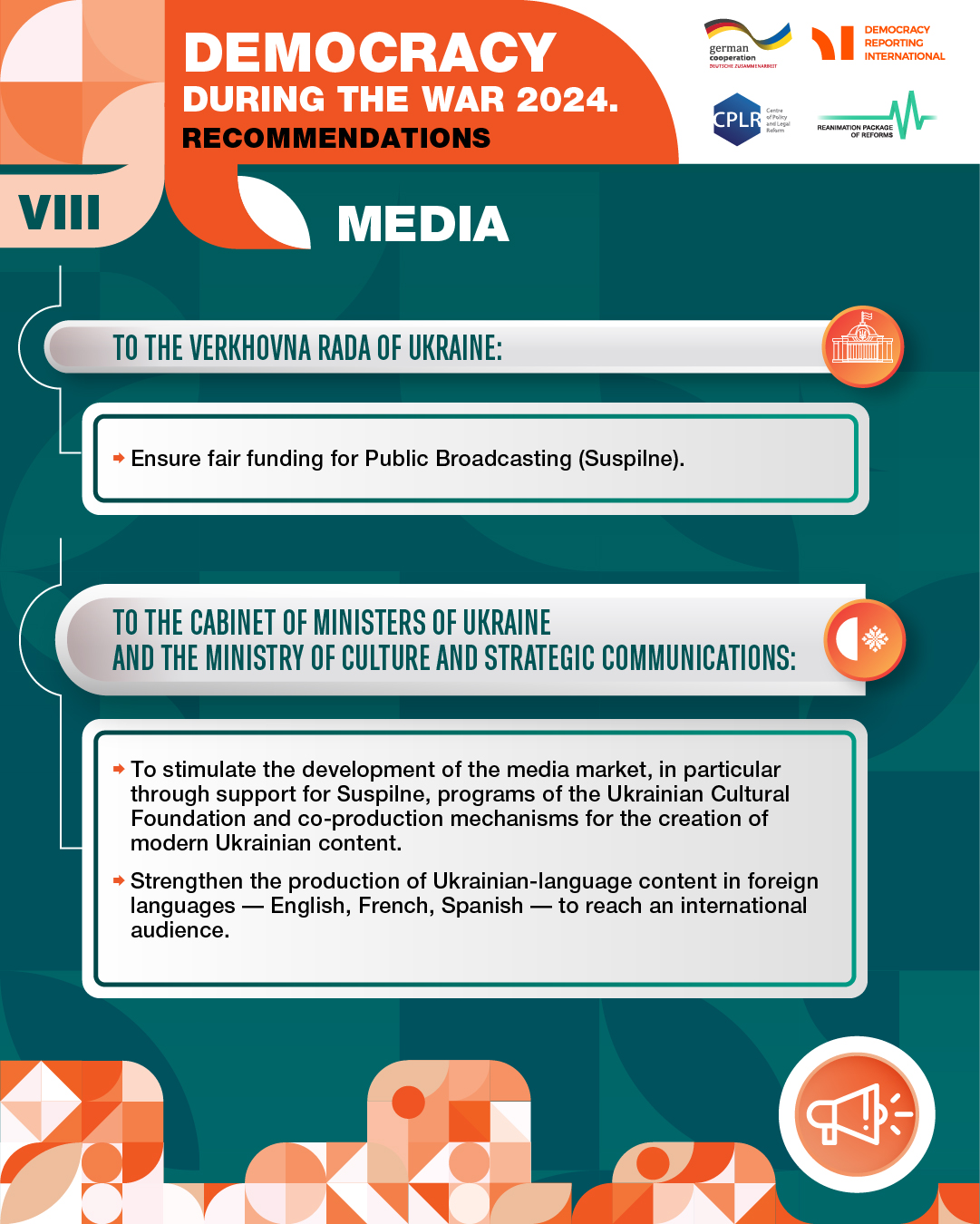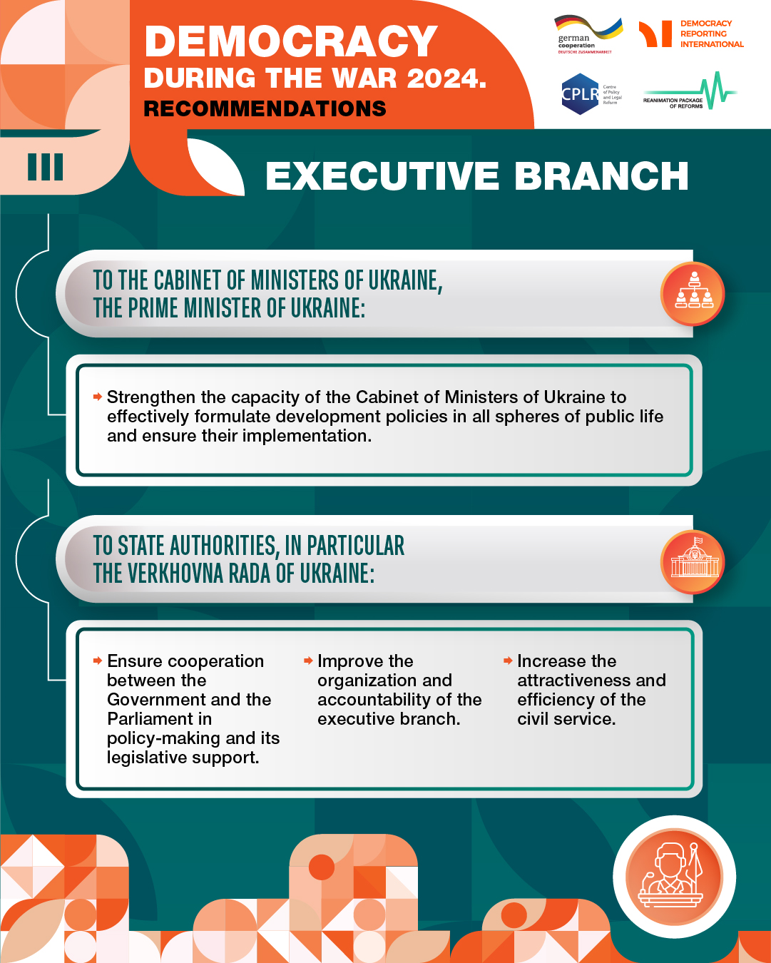 Key point: despite the war, the Parliament, Government, judiciary, and local self-government continue to function. The media maintain pluralism, and civil society retains its ability to influence decision-making.