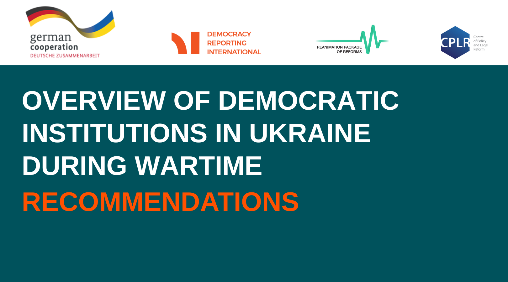 This publication was prepared within the project “Democratic Integration, Resilience, and Engagement” (Ukraine-DARE), implemented by Democracy Reporting International (DRI) in partnership with the Reanimation Package of Reforms Coalition and the Centre of Policy and Legal Reform, with financial support from the German Federal Foreign Office. The views and opinions expressed do not necessarily reflect the position of the German Federal Foreign Office.