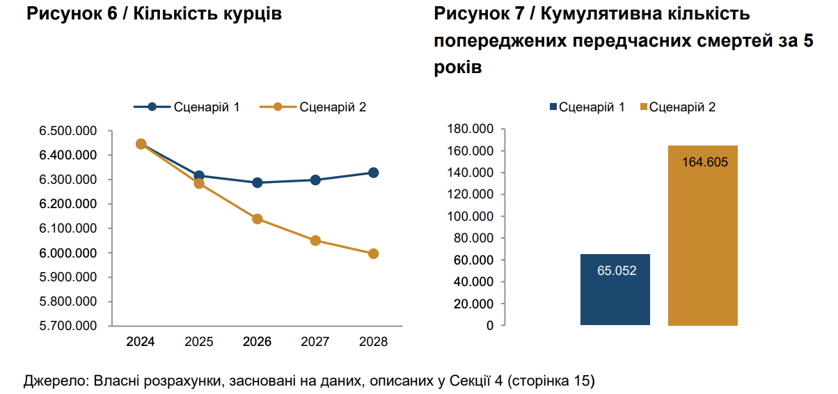 Таким чином інтенсивніша модель підвищення акцизів на тютюнові вироби вбереже на 100 тисяч українців більше.