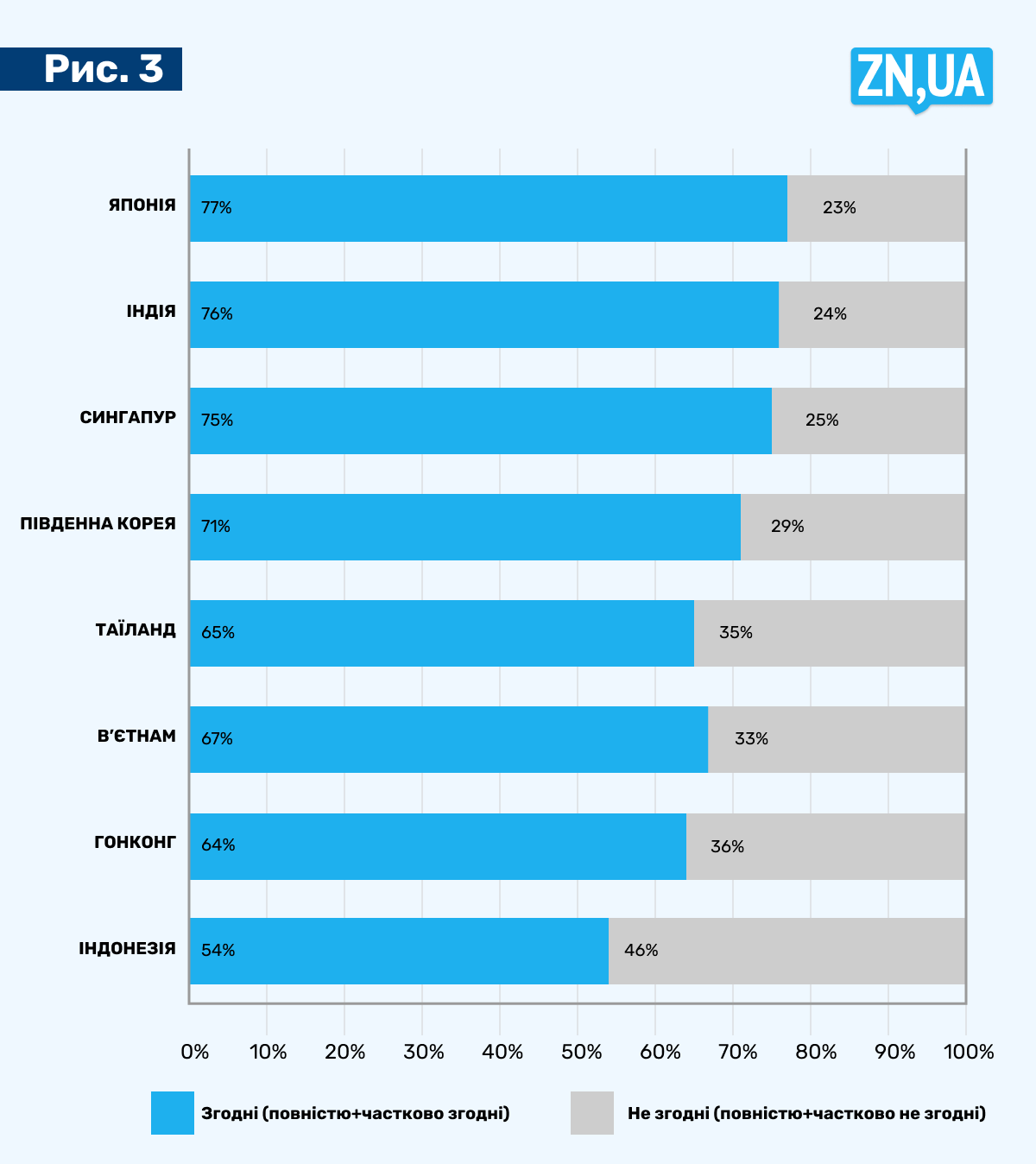 Загальна картина після 18 місяців виснажливої війни виглядає доволі оптимістично: у середньому сім із десяти опитаних вважають, що їхні уряди повинні підтримувати Україну в боротьбі проти російської агресії.