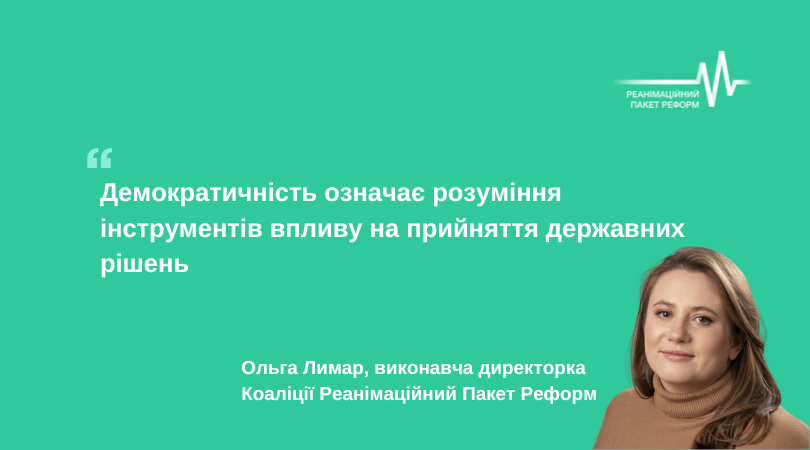 Реанімаційний Пакет Реформ > Новини > Події > Демократичність означає розуміння інструментів впливу на прийняття державних рішень — Ольга Лимар