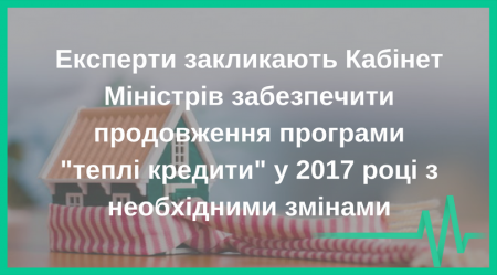 Крім того, нагальним питанням залишається те, що Кабінет Міністрів досі не затвердив постанову щодо продовження Програми на 2017 рік. Ця постанова є необхідною не лише для своєчасного запуску Програми, але й для внесення до неї необхідних змін, в тому числі, щодо моніторингу та верифікації результатів.