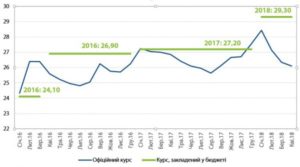 Сьогодні уряд схвалив постанову про основні напрямки бюджетної політики на 2019-2021 роки. В ній на 2019 році уряд спрогнозував середній курс гривні до долара США 30,5 гривні за долар, на 2020 рік – 31,4 гривні за долар, на 2021 – 31,8 гривні за долар.
