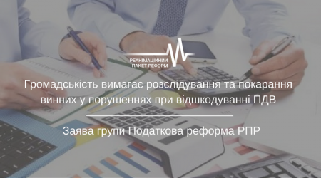 Реанімаційний Пакет Реформ > Новини > Заяви > Громадськість вимагає розслідування та покарання винних у порушеннях при відшкодуванні ПДВ