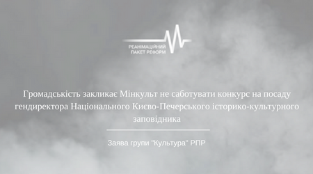 Громадськість звертає увагу Прем’єр-міністра України та всього суспільства на порушення посадовцями Міністерства культури вимог, встановлених законом України «Про культуру» щодо процедури проведення конкурсу, та вимагає забезпечити невідкладне проведення конкурсу з дотриманням чинного законодавства.