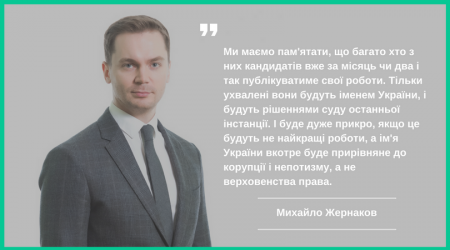І буде дуже прикро, якщо це будуть не найкращі роботи, а ім’я України вчергове буде прирівняне до корупції і непотизму, а не верховенства права.