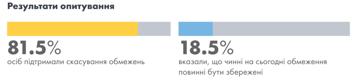 Думка опитаних щодо обмежень для жінок-військових для зайняття офіцерських посад у силових структурах: 81.5% осіб підтримали скасування обмежень. 18.5% указали, що чинні на сьогодні обмеження мають бути збережені.