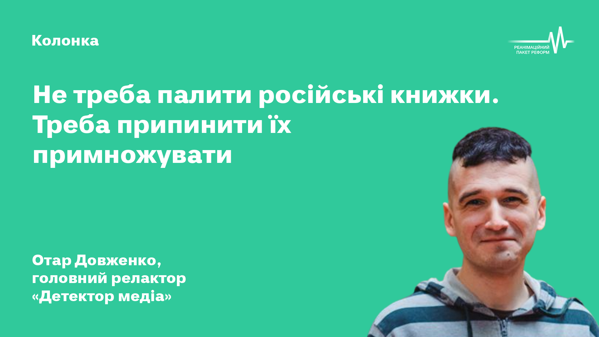 Але примножувати російські книжки в Україні більше не треба. Прийде час, коли ми зможемо спокійно переосмислити мовну ситуацію в країні й кожен для себе вирішити — чи потрібно нам друкувати щось російською для людей, які віддають перевагу цій мові для себе і виховують нею своїх дітей. Але не в ті дні, коли російською віддають накази про розстріл українських полонених.