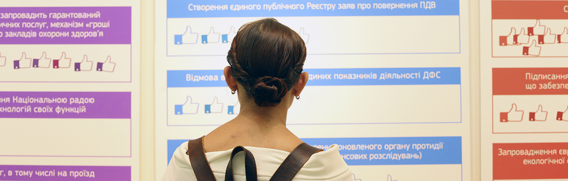 Всього на опитування виставллось 6 напрямків роботи уряду по 5 завдань у кожному. Опитування відбувалось наступним чином: кожен відвідувач отримував по 5 “лайків” різних кольорів, які потрібно було клеїти на дошки, по одному на кожен напрямок діяльності Кабміну.