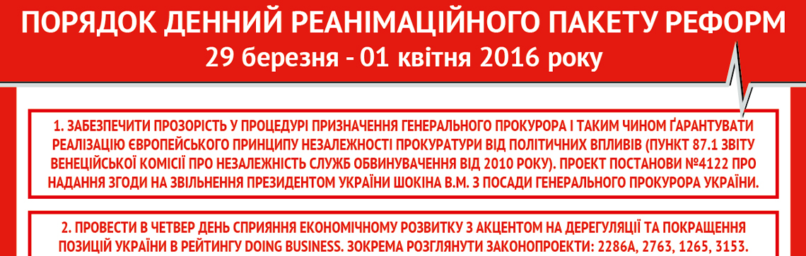 Реанімаційний Пакет Реформ > Новини > Інфографіки > Порядок денний РПР щодо роботи Верховної Ради на 29 березня – 1 квітня 2016 року