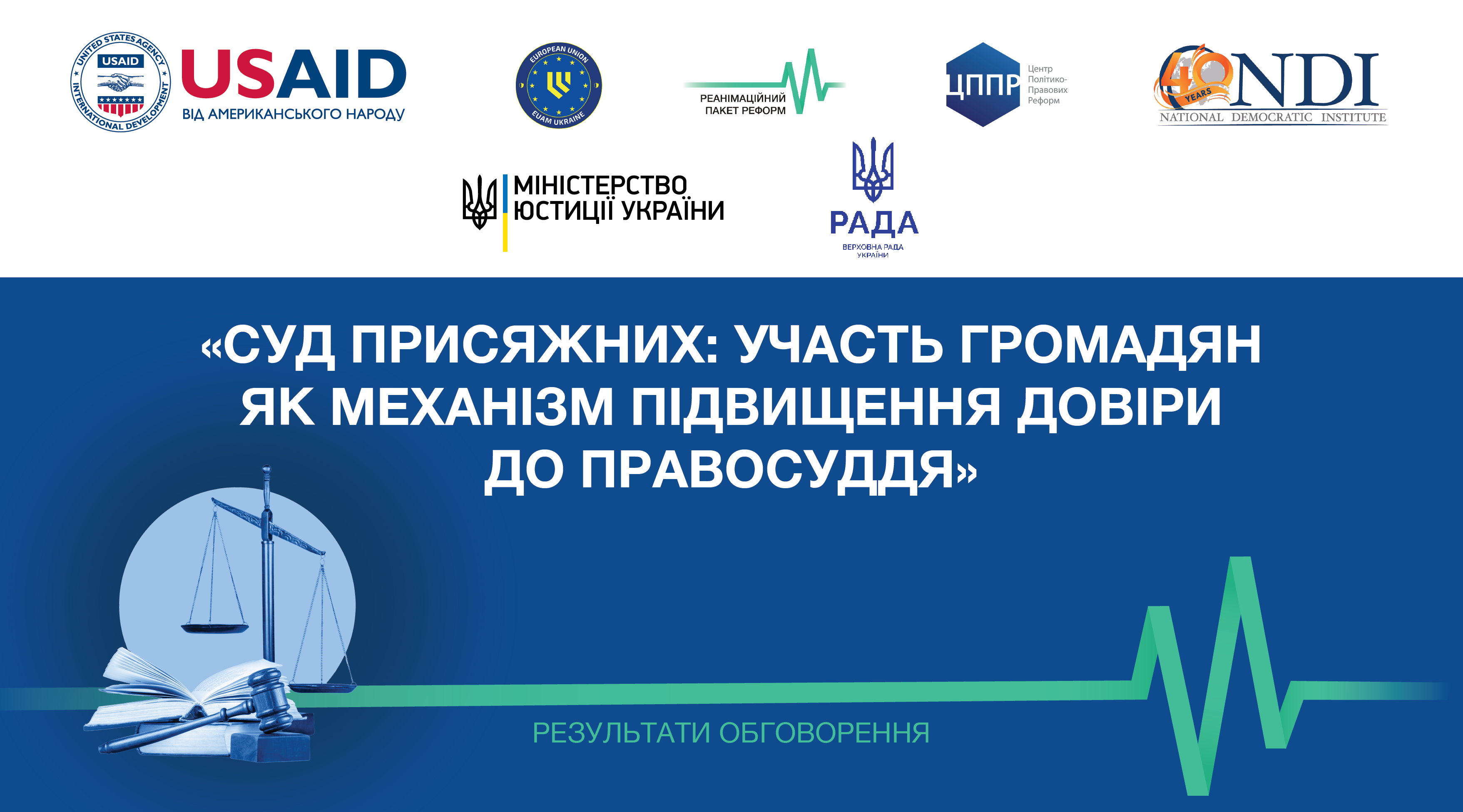 Захід підготовлено і організовано за ініціативою народних депутатів у партнерстві Програми USAID «Справедливість для всіх» спільно з Коаліцією Реанімаційний Пакет Реформ, Центром політико-правових реформ. Захід став можливий завдяки щедрій підтримці американського народу, наданій через Агентство США з міжнародного розвитку (USAID) в рамках Програми “Відповідальна та підзвітна політика в Україні” (U-RAP), що виконується Національним демократичним інститутом (НДІ), Міжнародним республіканським інститутом (МРІ) та Міжнародною фундацією виборчих систем (IFES). Думки, висловлені на цьому заході, є виключно особистою позицією учасників заходу і не обов’язково відображають погляди Агентства США з міжнародного розвитку (USAID) або уряду Сполучених Штатів Америки.