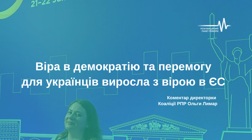 «От саме про це нам варто говорити. Що інтеграція, відновлення — це про нове бачення України, а не лише реконструкція будівель. Розуміння відновлення як наближення до цінностей ЄС буде сигналом і міжнародним партнерам, членам Європейського Союзу, що для українців інтеграція до ЄС — це про значення верховенства права та прав людини, а не в першу чергу про отримання додаткових коштів чи інфраструктуру», — додала директорка Коаліції.
