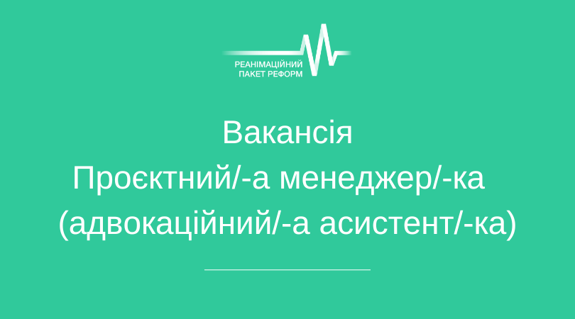 Коаліція Реанімаційний Пакет Реформ запрошує до команди проєктного/-у менеджера/-ку/ адвокаційного/-у асистента/-ку, фахівця чи фахівчиню своєї справи, який/-а розділяє наші цінності та прагне долучитися до впровадження реформ в Україні.